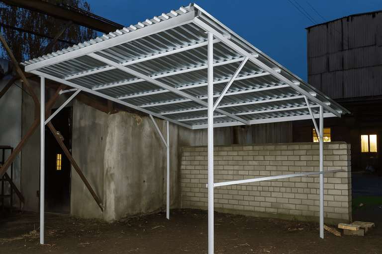 Изготовить навес из профильной трубы можно в сжатые сроки — технология позволяет точно рассчитать нагрузки и обеспечить надежность конструкции. Такие навесы подходят для небольших участков и больших парковочных зон.